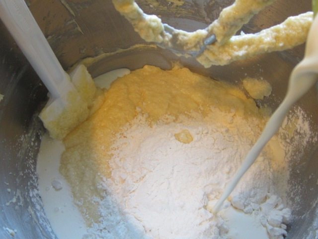 Continue the process with the last third of flour mixture and cream.
