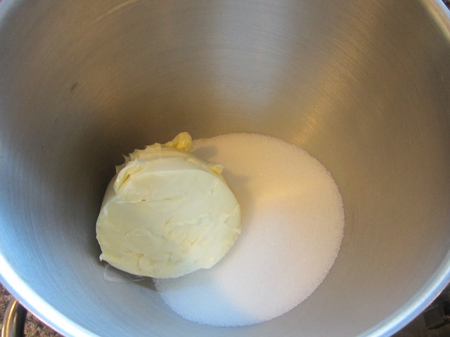 In a large mixing bowl, use electric beaters or your stand mixer to cream together the sugar and butter until light and fluffy.