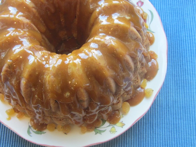 So, without further ado, I give you this rum raisin Bundt cake with loads of rich butter, topped with a rum honey glaze. I made this for the lovely real estate agent who helped us get settled in our house. She went beyond the normal call of duty, even taking me to buy snacks at the grocery store on the day that I was waiting around in an empty house without transport or telephone for the airfreight and rental furniture. She deserved a cake filled with booze and gratitude!