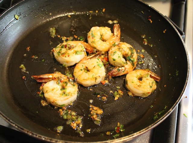 6 large shrimp, peeled and deveined (I left the tails on because they are prettier that way but if your shrimp are already completely peeled, it’s no big deal) With the tails on, these weighed 150g or about 5 1/4 oz.