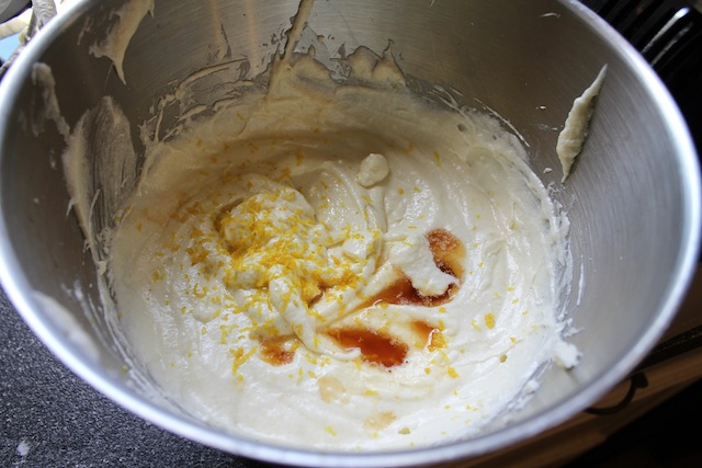 Add the vanilla and lemon zest and beat until incorporated.