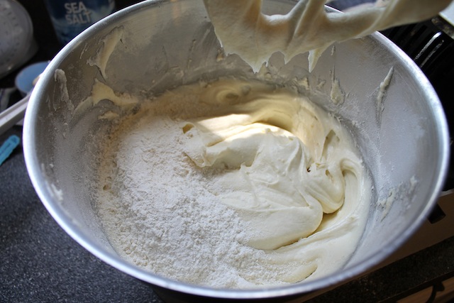 Add the rest of the flour mixture and beat just until incorporated.