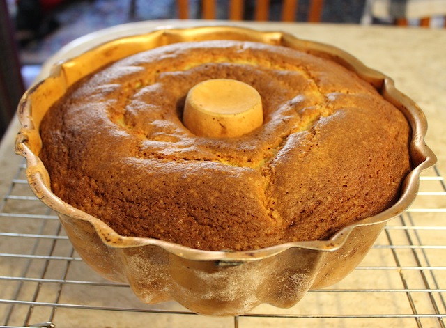While I was in Houston for a week visiting family, I decided that it would be a good time to bake my Bundt for April’s BundtaMonth because 1. Time would be short when I got back to Dubai and 2. I had been invited over for dinner and 3.  I found this lovely Bundt pan in my cupboard.