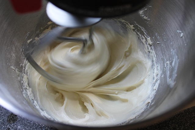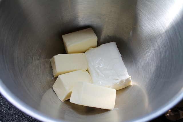 In the bowl of your electric mixer, or with a hand mixer, beat the butter and cream cheese until smooth.