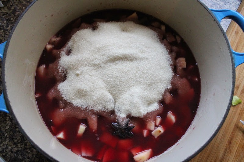 Add in the golden caster sugar and cook over a medium high heat for about 35-45 minutes, stirring occasionally. Do keep an eye on it so it doesn’t boil over.