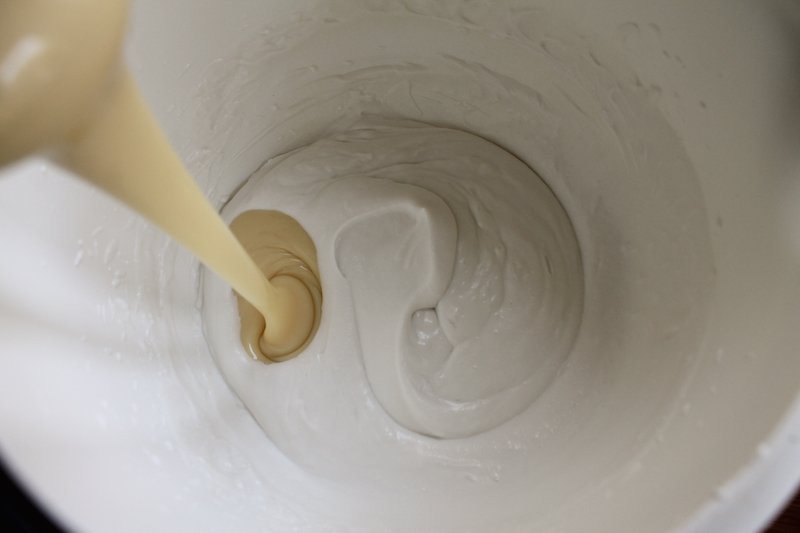 Add in the condensed milk and whisk again.