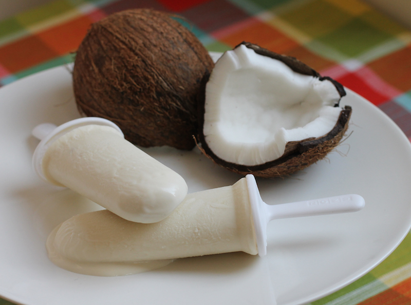 This week my Sunday Supper group is anticipating Labor Day in the United States by sharing no-labor recipes, with plenty of make-ahead or simple-to-prepare dishes and drinks that will leave you plenty of time to relax and enjoy the holiday tomorrow! I had no idea what to share for this event until I remembered some coconut popsicles I made a couple of months back as an experiment that had turned out with gratifying success. So I made them again for real.