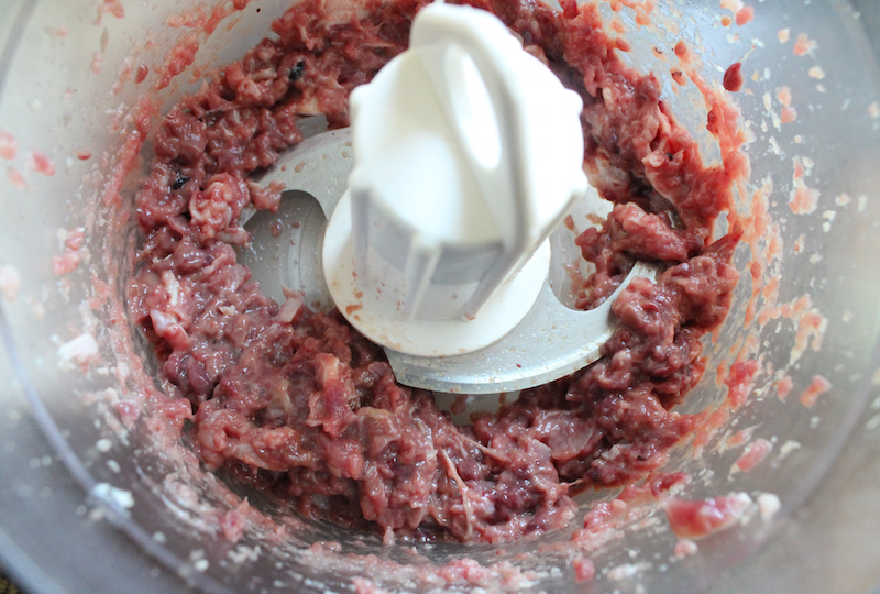 Put your gizzards in the food processor and chop them up finely. Add in the liver and give it another few pulses to chop the liver as well.