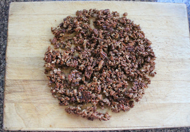 Cool in pan 10 minutes, then turn the praline out onto a cutting board. Allow to cool completely and then chop finely with a sharp knife.