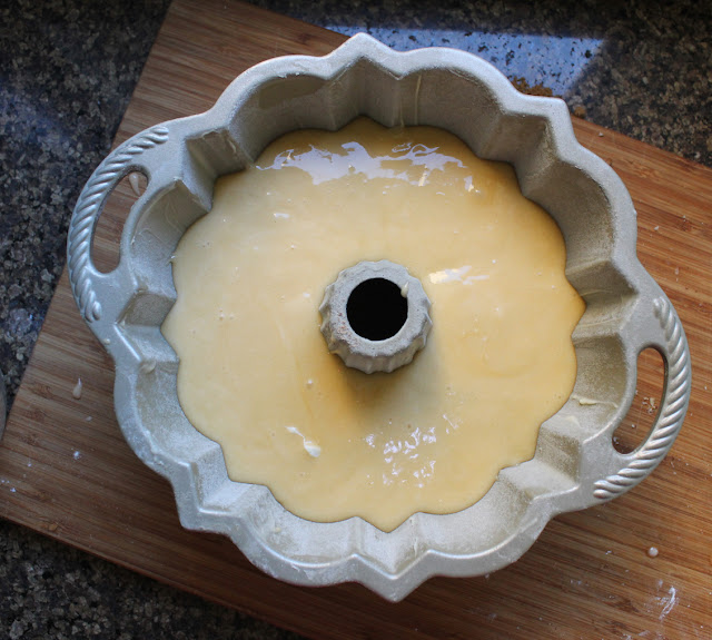 Preheat oven to 350°F or 180°C. Grease and flour 6-cup Bundt pan. (Mine is called the 6-cup Anniversary Bundt pan by Nordic Ware, in case you are curious.)